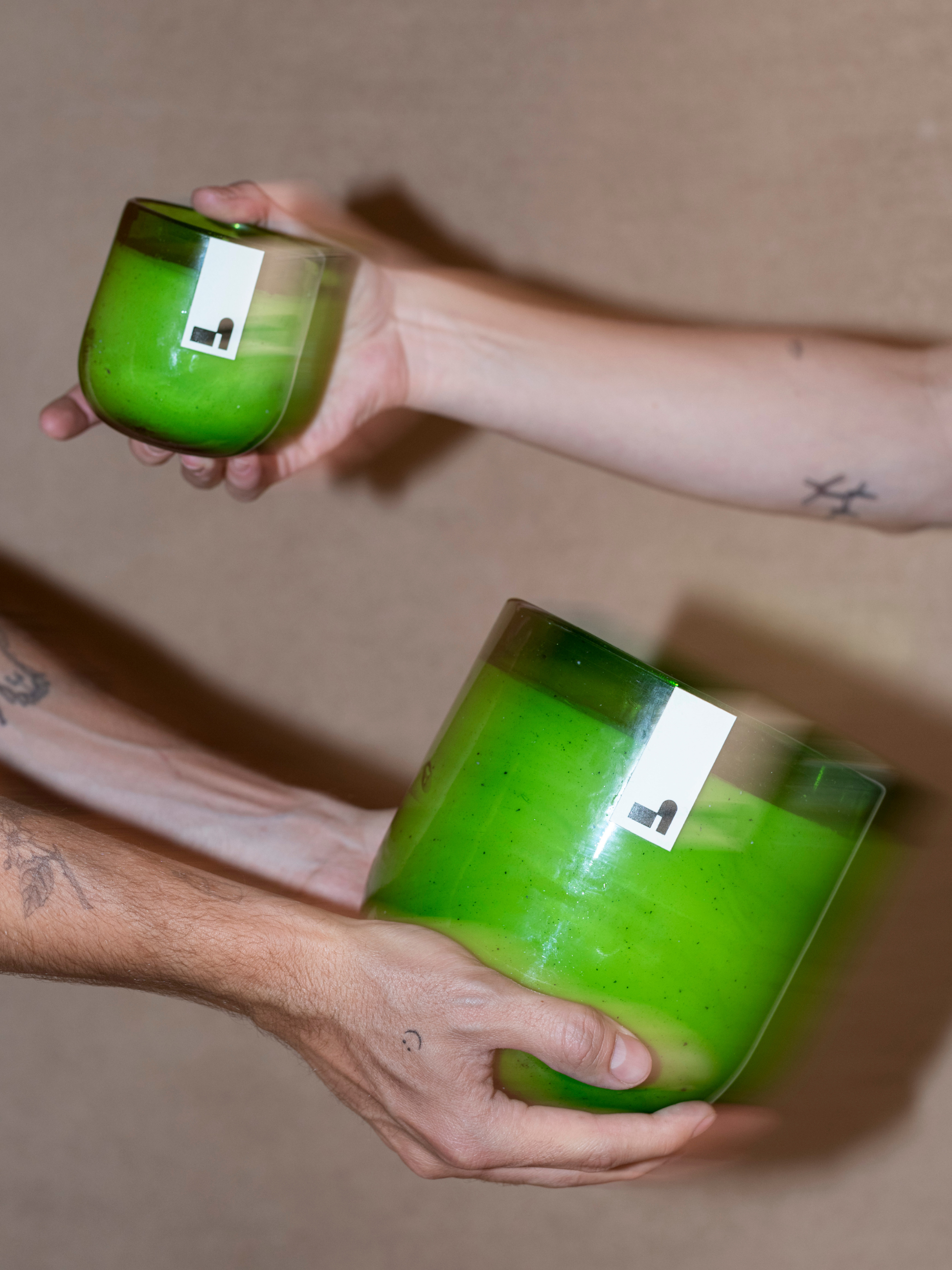Nuestras velas aromáticas en vaso de vidrio soplado artesanal dan una luz cálida y tenue. Elaboradas con una base de ceras de soya y coco y libres de parafinas hacen que su combustión sea más lenta y pareja.